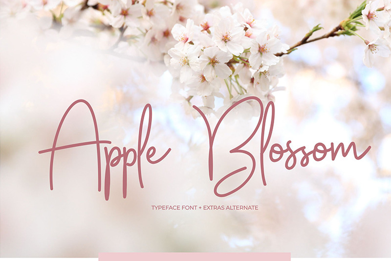 Apple Blossom is a modern script font. This font will be suitable for logotype, wedding card design, product packaging, quotes, logo's, book covers, name card, invitation cards, greeting cards, and all your other lovely projects.