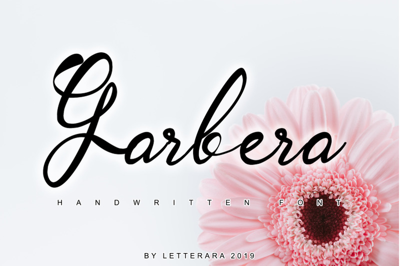 Garbera Flower Font designed and shared by letterara. Garbera Flower Script Font is modern script font, every single letters has been carefully crafted to make your text looks beautiful. With modern script style this font will perfect for many different project, example: invitations, greeting cards, posters, name card, quotes, blog header, branding, logo, fashion, apparel, letter, stationery and more !