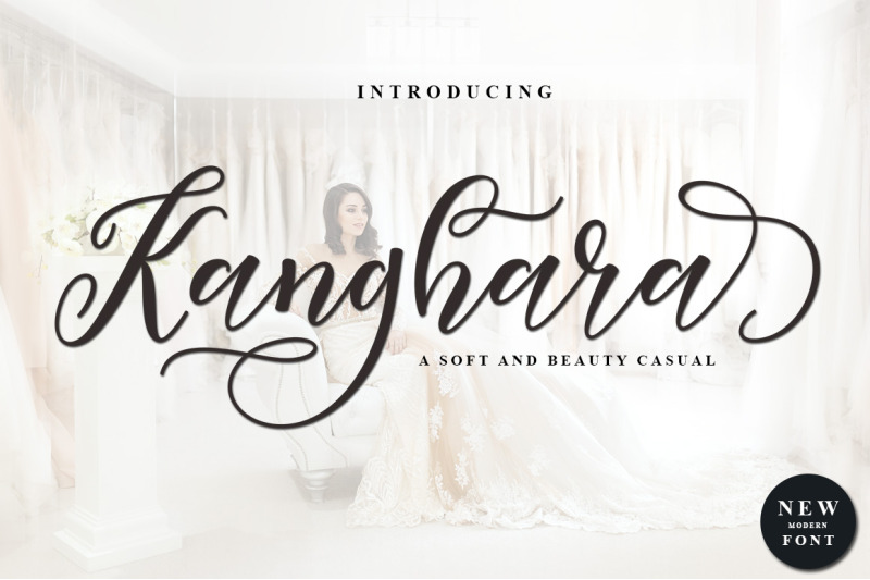 Kanghara is a calligraphic script font with varying baseline, which is designed to convey elegance and style. It is smoothline, clean and feminine. Works perfectly for logos, magazines, menus, books, invitations, wedding / greeting cards, packaging, labels, t-shirt etc. All designs you will have a wonderful homemade touch with Kanghara.